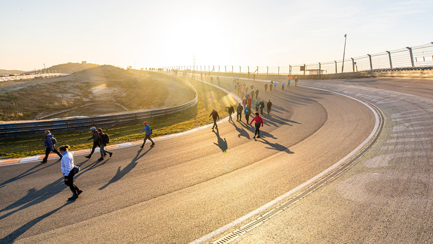 Ruim een op de drie wandelaars kiest voor deze One Lap (4 km) en gaat het indrukwekkende circuit trotseren. De zonsopkomst zorg in de vroege ochtend voor unieke plaatjes van de curbstones, de steile bochten en de hoofdtribune. Er zijn nog maar 500 van deze extra tickets beschikbaar, dus aan populariteit niets te klagen voor de organisatie. Naast de unieke startlocatie op Circuit Zandvoort genieten deelnemers onder andere van het prachtige Nationaal Park Zuid-Kennemerland, het Noordzeestrand en de gezelligheid in het centrum van Zandvoort.